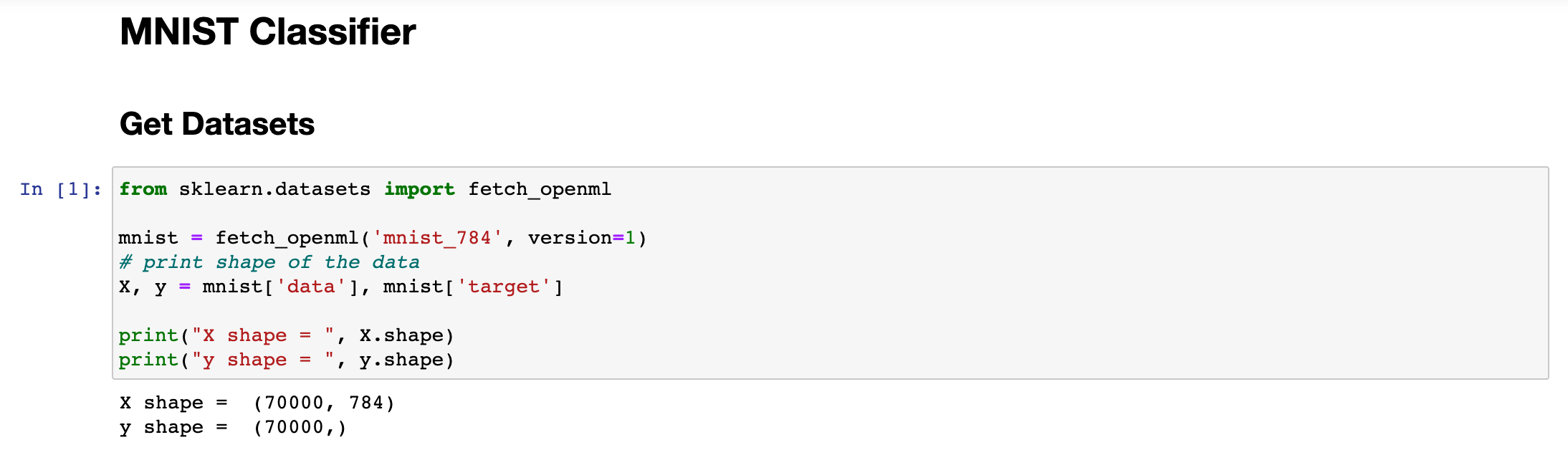 MNIST는 기계학습계의 "Hello world"라고 불릴 만큼 유명한 데이터셋입니다. MNIST데이터셋에는 여러 가지 종류가 있지만 이번 포스팅에서는 가장 기초적인 머신 러닝 모델 학습을 위해 숫자 데이터셋을 이용하도록 하겠습니다. 모델은 28*28 크기의 손글씨 숫자 데이터를 입력받아 해당 손글씨가 나타내는 숫자를 출력하는 간단한 모델입니다. 코드는 Jupyter notebook을 이용하여 Python3 환경에서 작성 및 실행되었으며, 제 Github Repository 에 전체 코드가 작성되어 있습니다.