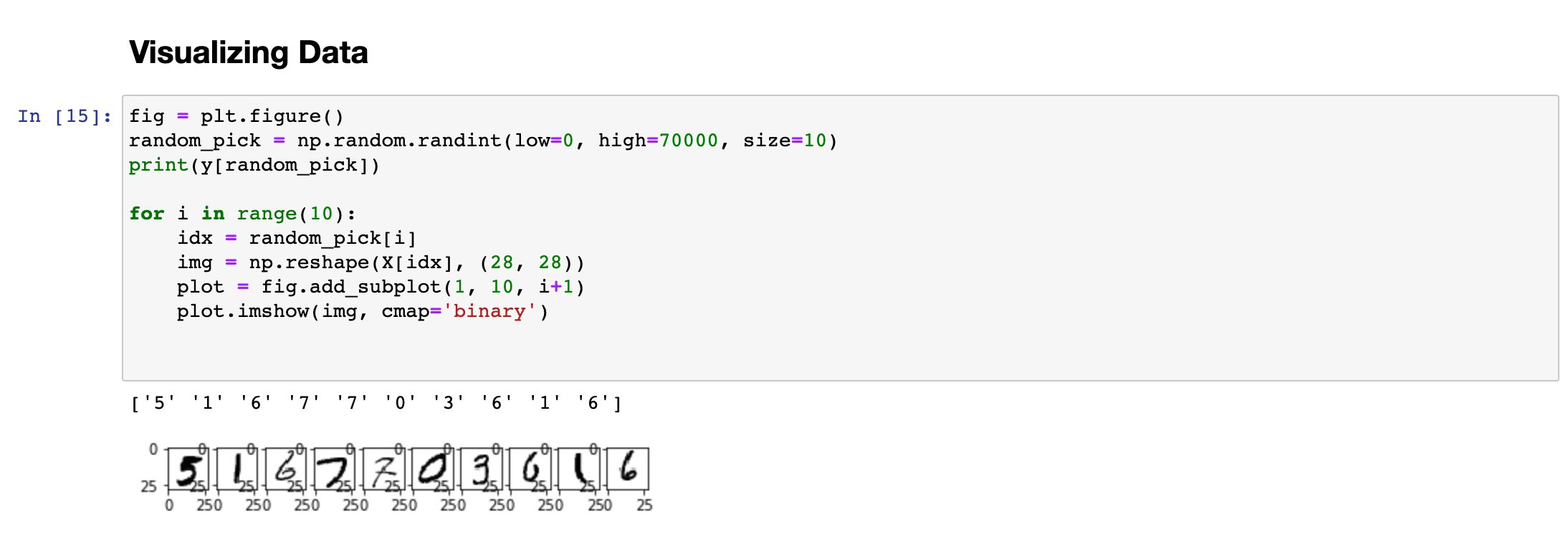 앞서 말씀드린 바와 같이 실제 모델의 성능 평가에 사용하기 위해서, 1만개의 테스트 셋을 따로 분류해 놓습니다. 그리고 나서 트레이닝 셋의 index를 np.random.permutation 함수를 이용하여 마구잡이로 섞어놓는데, 이는 MNIST데이터가 순서대로 나열되어 있는 점을 고려했을 때, 학습을 순서대로 진행하는 것 보다 임의의 순서대로 진행하도록 하는 것이 학습 효율이 더 좋기 때문입니다. (0이 정답인 데이터 1만개를 훈련시킨 다음에 1이 정답인 데이터 1만개를 그 다음에 훈련시키는 것보다 섞어서 훈련시키는 것이 효율이 더 좋음)