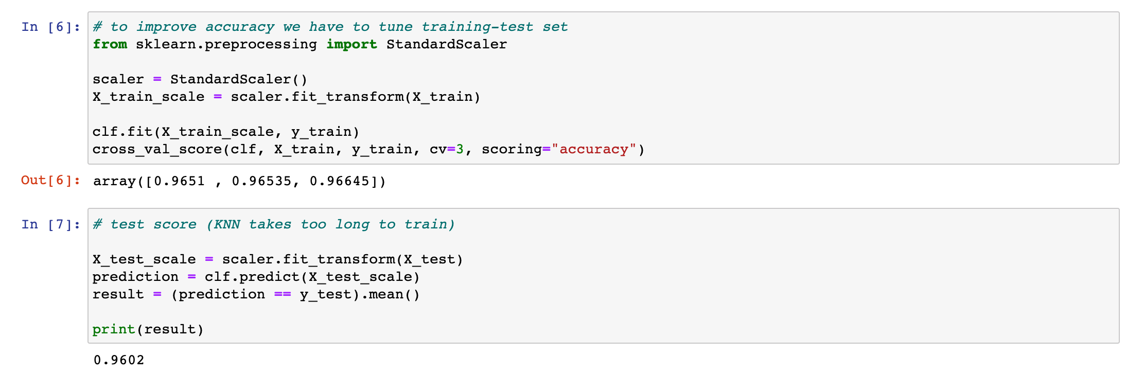 동일한 모델 (Random Forest Classifier)을 가지고 테스트를 다시 진행한 결과 0.9% 의 성능 향상을 얻을 수 있었습니다. 다만 학습에 더 오랜 시간이 소요되므로 이러한 오버헤드를 잘 고려해서 모델을 설계해야 합니다.