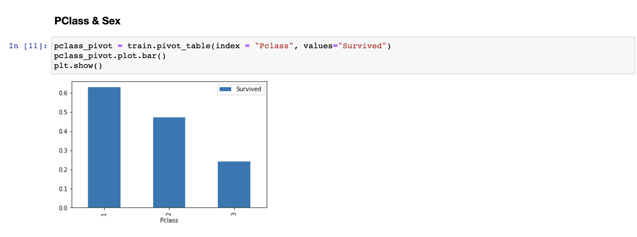 좋은 객실에 탑승한 승객일수록 생존확률이 높다는 점을 확인할 수 있습니다. 마찬가지로 PClass 정보도 생존율에 영향을 미치고 있는 것을 확인할 수 있습니다.