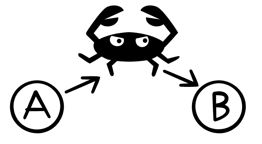 무결성이란 송신자가 전송한 메세지가 수신자에게 도달하는 동안 변조되지 않았음을 의미합니다. 무결성이 지켜지지 않는 프로토콜은 중간자 공격에 취약하다는 특성을 지니고 있습니다. 중간자 공격이란 아래 그림과 같이 A에서 B로 메시지가 가는 도중에 이를 탈취해서 악의적인 내용들을 담아서 전송하는 것을 의미합니다. 단순히 악의적인 메시지를 담는 것을 넘어서 악의적인 금융 사기나, 바이러스들을 심어서 전송할 수 있기 때문에 통신 프로토콜에서 무결성은 굉장히 중요한 비중을 차지하고 있습니다. HTTPS는 인증서를 통해 이 무결성을 보장하는 프로토콜입니다.