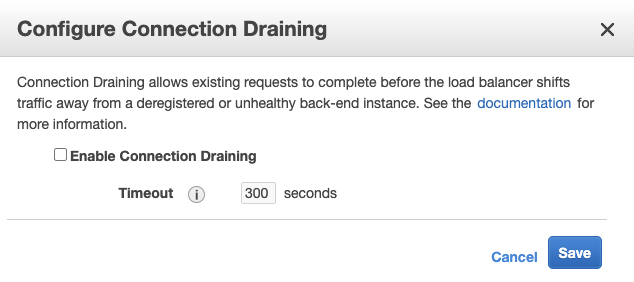 Connection Draining은 특정 인스턴스가 unhealthy상태로 바뀌었더라도, 해당 시점에 인스턴스가 처리하고 있는 in-flight request가 있다면, 해당 Request가 처리될 때까지 커넥션을 유지합니다. 해당 Connection을 유지하는 최대 시간(maximum timeout)을 명시적으로 설정할 수 있으며, maximum timeout을 초과할 경우에는 인스턴스가 해당 커넥션을 강제 종료합니다.