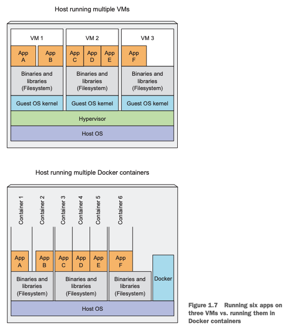 리눅스 컨테이너 기술은 위 두가지 메커니즘을 통해서 각각의 컨테이너가 독립된 환경에서 구동되는 것을 보장하며, VM방식과는 다르게 Host OS위에서 동작하기 때문에 다른 커널들을 위한 리소스, 하이퍼바이저를 위한 리소스 등이 필요하지 않게 됩니다. 따라서 훨씬더 가볍고 부담없이(lightweighted) 동작이 가능합니다. 도커가 바로 이 리눅스 컨테이너 위에서 동작하는 플랫폼입니다.