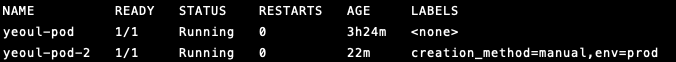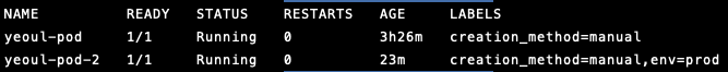 kubectl label po yeoul-pod creation_method=manual