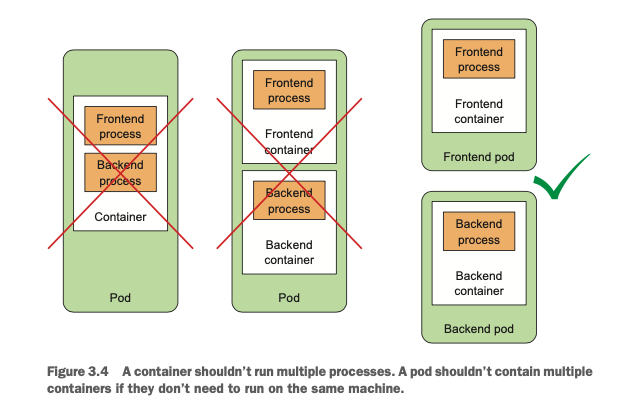 하나의 애플리케이션을 하나의 파드에 여러 컨테이너로 구성된 구조로 조직하게 되면, horizontal scaling을 할 때에 불필요한 리소스가 낭비될 수 있습니다. 이를 테면 프론트엔드 서비스만 scaling하면 되는데 단일 파드로 조직되어 있으면 어쩔수 없이 백엔드 서비스까지 Scaling되는 것입니다. 쿠버네티스에서 배포의 기본 단위는 파드이므로 쿠버네티스 명령어를 사용해서 특정 컨테이너만 따로 배포할 수는 없습니다. - Kubernetes Utilization을 최대한 활용할 수 있다.
