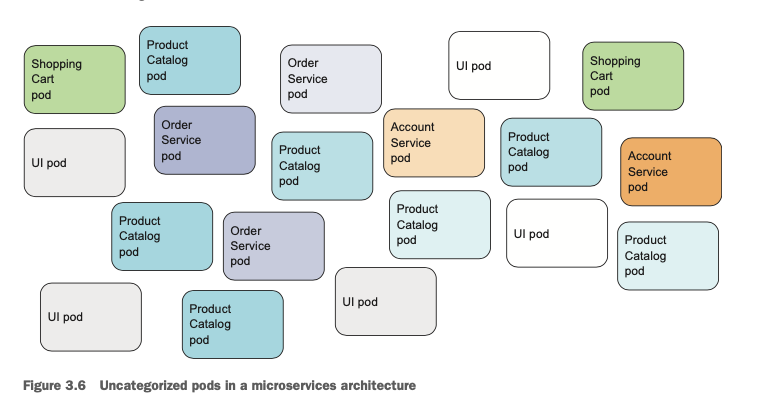 위의 예시에서는 1~2개의 파드를 가지고 테스트를 했지만 실제로 마이크로 서비스 아키텍쳐에서는 시스템을 구성하는 파드가 수십개를 넘어가는 경우가 대부분입니다. 따라서 이 파드들을 적절하게 조직하고 관리하는 방법이 필요한데 이를 위해서 쿠버네티스에서는 Label과 Namespace를 제공합니다.