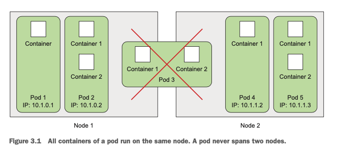 파드(Pod)는 쿠버네티스의 Basic Building Block으로써 컨테이너들을 포함합니다.(일반적으로 1개의 파드에 1개의 컨테이너를 넣는 것을 권장하지만, 경우에 따라서 하나의 파드안에 여러 개의 컨테이너들을 넣을 수 있습니다.) 컨테이너를 하나씩 배포하는 도커와는 다르게 쿠버네티스에서는 기능을 수행하고 배포하는 최소 단위가 바로 이 파드입니다. 파드는 하나의 노드 위에서만 동작하므로, 여러 개의 컨테이너를 포함할 수 있지만, 그러한 경우에도 하나의 파드가 여러개의 노드로 분산될 수는 없습니다.