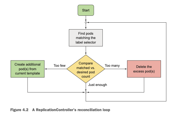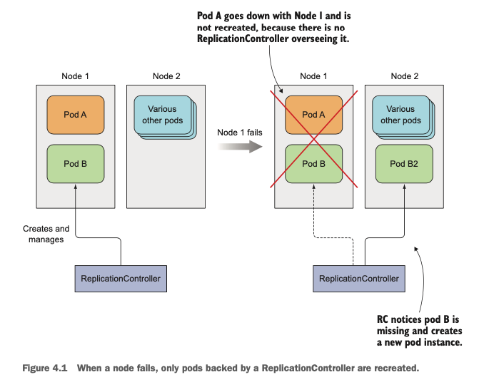 쿠버네티스의 장점 중 하나는 사용자가 제공하는 컨테이너들의 정보(어떤 컨테이너를 몇개씩 배포할 것인지)를 쿠버네티스에 제공하기만 하면 쿠버네티스가 이 정보대로 컨테이너들이 동작하도록 "보장"한다는 것입니다. 즉 사용자 입장에서는 파드를 생성한 후에 매뉴얼하게 이를 모니터링하고, 파드를 재시작하는 등의 불필요한 동작을 할 필요가 없다는 것입니다.
