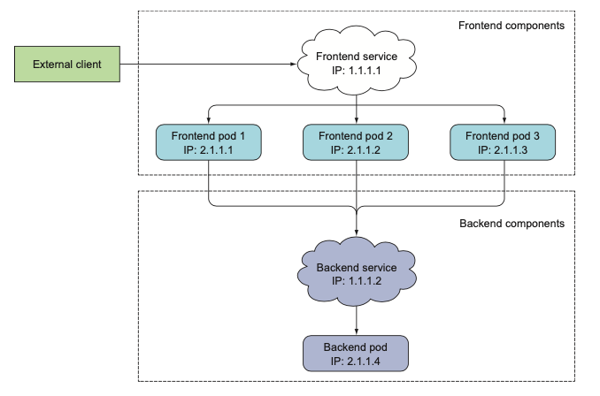 쿠버네티스는 파드가 워커 노드에 스케줄 된 이후에 해당 파드에 IP를 부여합니다. 따라서 앞으로 생성될 파드들의 IP를 미리 알 수 없으므로 이를 클라이언트 사이드에 미리 저장해둘 수 없음을 의미합니다. - Horizontal scaling means multiple pods may provide the same service