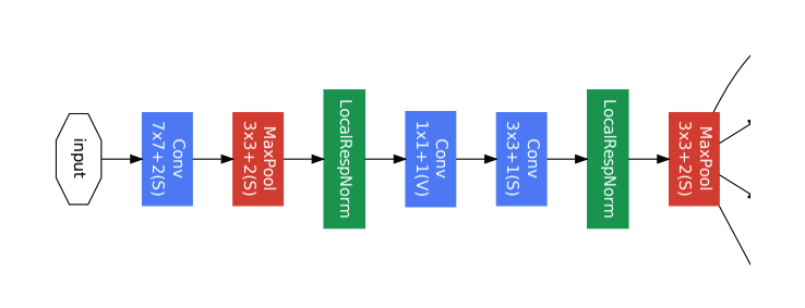 입력 이미지와 가까운 부분. 효율적인 메모리 사용을 위해 낮은 레이어에서는 기본적인 CNN 모듈만 적용되었다. Alexnet에서 사용된 LRM(Local Response Norm)을 사용하였다.
