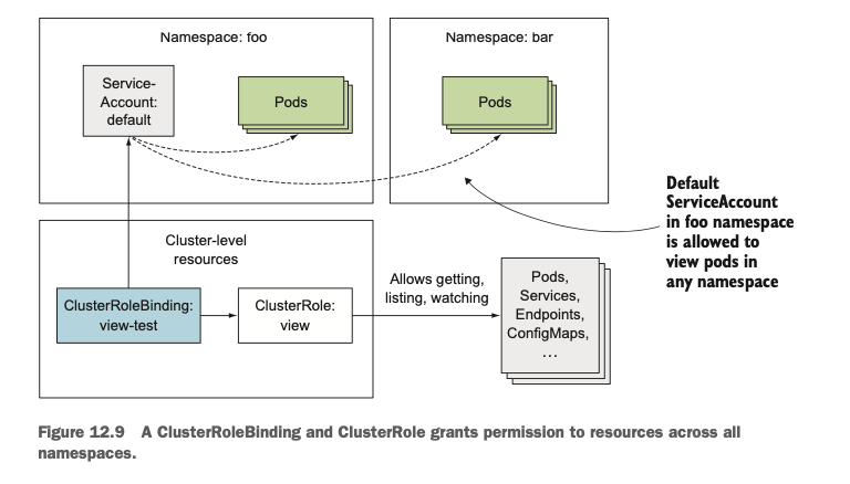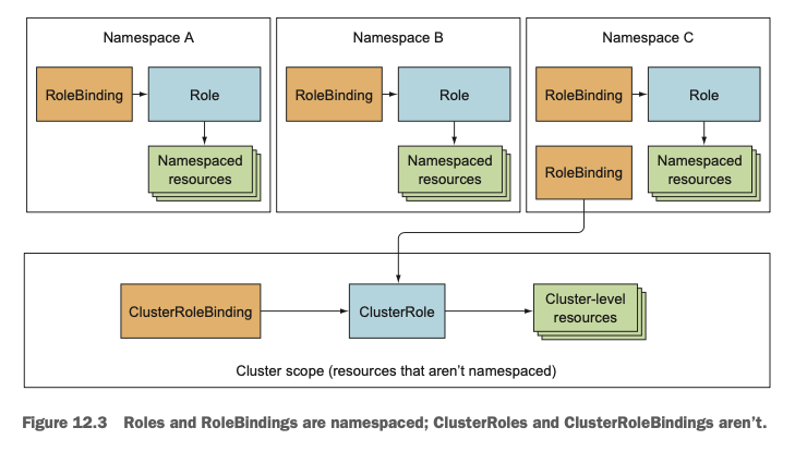 ClusterRoleBindings에 연결되는 경우 임의의 namespace안에 있는 리소스에 대해 권한이 부여됩니다.