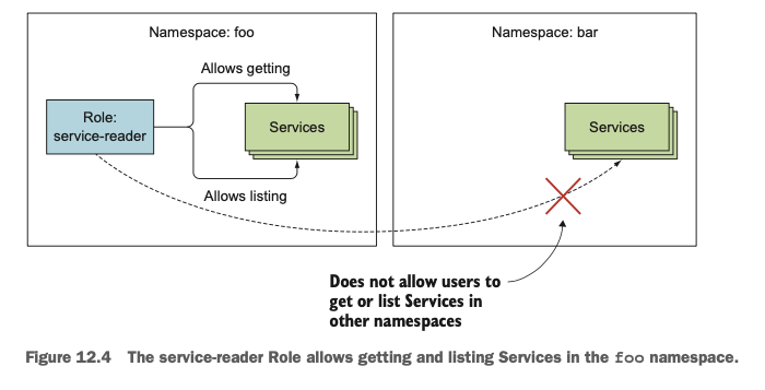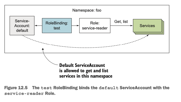 API 서버가 ServiceAccount의 토큰을 사용해서 인증한 뒤에는 role-base access control(RBAC)와 같은 권한 부여(authorization) 플러그인을 사용해서 해당 토큰으로 요청한 리소스에 접근하여 요청을 수행할 권한이 있는지를 확인하게 됩니다.