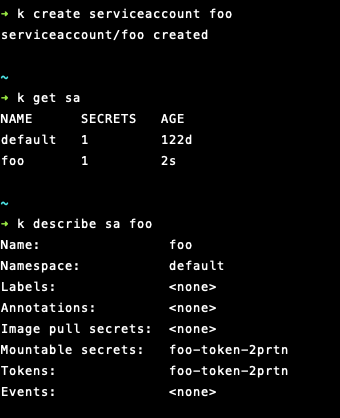 kubectl create serviceaccount foo