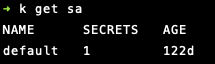 실제로 이렇게 생성된 ServiceAccount를 살펴보면 다음과 같습니다.