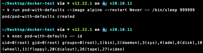 securityContext 옵션은 컨테이너 레벨에서뿐 아니라 파드 레벨에서도 설정이 가능합니다. pod.spec.securityContext 프로퍼티를 이용해서 설정할 수 있으며 파드 레벨에서 설정하면 파드 안의 모든 컨테이너에 적용됩니다. 파드 레벨과 컨테이너 레벨에 모두 설정되어 있다면 파드 레벨의 securityContext를 컨테이너 레벨에서 override 하는 식으로 동작하게 됩니다.