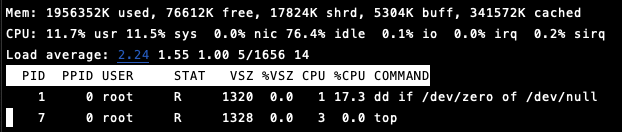 실제로 파드를 생성하고 top 명령어를 통해 CPU Consumption을 확인해 볼 수 있습니다.