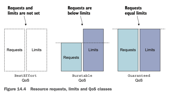 - 파드가 사용할 수 있는 리소스에 대해 어떠한 보장도 하지 않습니다. Starvation이 발생할 수도 있고, 노드 Capacity를 초과하는 경우 가장 먼저 kill 됩니다.