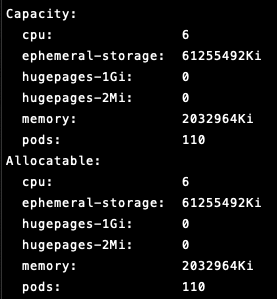 다음과 같은 명령어를 사용하면 사용하고 있는 노드의 자원 양을 확인할 수 있습니다.