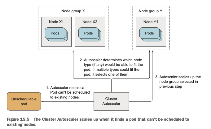 새로운 파드가 생성되었는데 이미 존재하는 노드에는 스케줄 할 수 없을 때 Cluster Autoscaler는 추가적인 노드를 프로비저닝 합니다. 새로운 노드를 프로비저닝 했을 때 해당 노드가 새로 생성될 파드를 스케줄 할 수 있어야 하므로(accomodatable) 대부분의 Cloud Provider들은 노드를 Grouping 하며, 새로운 노드를 프로비저닝 할 때, 프로비저닝 할 노드 타입을 명시해야 합니다.