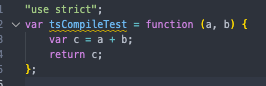 실제로 다음과 같은 간단한 예제를 strict모드를 활성화하여 컴파일하면 'use strict'가 앞에 붙는 것을 확인할 수 있습니다.