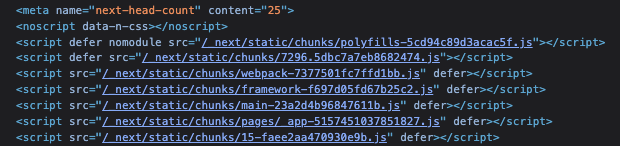 실제로 Nextjs에서는 다음과 같이 nomodule 태그를 사용하여 module 타입을 지원하지 않는 브라우저에 대한 polyfill 번들을 추가로 불러오도록 처리하고 있습니다.