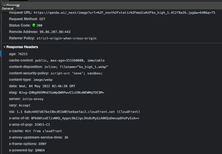 Web Dev Study는 정말 정말 유익하다. 잘 몰랐던 것들을 "배우는"것 자체도 좋았지만, 실제로 배운 사실들을 바탕으로 직접적인 웹 서비스의 성능 향상이 조금씩 이루어지고 있어서 팀원들 모두에게, 그리고 전사 퍼포먼스에도 좋은 영향을 미치는 것 같다. 일례로, 저번 주 스터디인 Image Optimization에서 next/image가 브라우저의 accept 헤더를 보고 지원하는 경우 webp로 이미지를 변환해주는 최적화 작업을 수행한다는 것을 배웠는데 이를 살펴보기 위해 사내 서비스들의 이미지 최적화를 조사하던 도중, CF에서 next/image를 적용한 이미지들이 CloudFront Miss가 나고 있는 것을 발견하게 되었다. 인프라팀과 논의해서 이미지 최적화를 사용하면서 CF캐시가 잘 될 수 있도록 하는 캐싱 정책을 새로 정했고, 이를 전사 프론트엔드 프로젝트들에 일괄 적용하였다.
