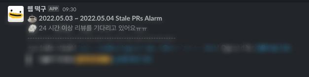 뭐 더 할 게 없을까 찾아보다가, 우리 팀이 매주 얼마만큼의 PR을 올리고 있고, 이 PR에 대해서 얼마나 적극적으로 리뷰하고 있는지, 24시간 동안 리뷰가 없는 PR은 무엇인지를 카운트하는 여러 지표들을 주기적으로 남기기 위한 Bot을 만들었다. CloudScheduler + CloudFunction의 조합을 사용해서 봇을 만들었고, 이후에도 팀원들이 필요할 때마다 편하게 슬랙 봇을 만들어서 배포할 수 있도록 인프라 세팅까지 마련해두었다.