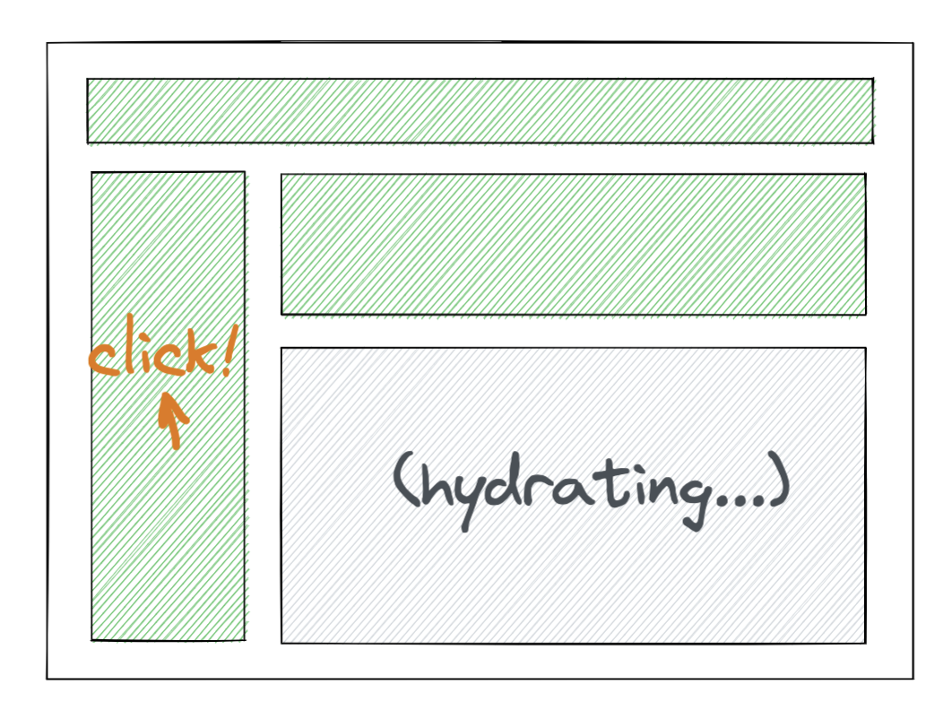 예를 들어, 댓글 위젯쪽에 굉장히 시간이 오래 걸리는 렌더링 로직이 들어있다고 가정해보겠습니다. 한번 Hydration이 시작되면, 전체 컴포넌트 트리가 완전히 Hydration 되기 전까지 유저는 댓글 위젯 뿐 아니라 네비게이션바, 사이드바, 포스팅 본문들 모두와 상호작용할 수 없습니다. 특히 네비게이션바의 경우 유저가 이 페이지 자체에서 떠나고 싶지만, Hydration이 진행되는 동안에는 해당 컴포넌트와 상호작용을 할 수 없으므로 더 이상 보고 싶지 않은 페이지에 남아 있어야 하는 경우가 생기게 됩니다.