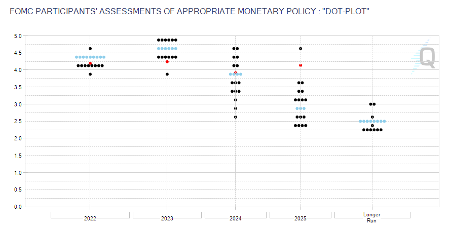9월 FOMC에서 연준은 또다시 자이언트 스텝 (0.75% 기준금리 인상)을 단행했고, 이에 따라 현재 미국의 기준금리는 올해 초 0%에서 3.25%가 되었다. 이 정도의 기준금리 인상 속도는 80년대 인플레이션 파이터 폴 볼커 이후로 처음 보는 속도이며, 연준의 물가 안정에 대한 의지가 확실하다는 것을 보여주는 수치라고 이야기할 수 있을 것이다. 제롬 파월 연준 의장은 0.75% 금리 인상을 이야기하면서, 올해 연말 기준금리가 4.4% 정도 선이 될 것이라고 이야기했고, 이는 기존 예상치인 4% 보다 0.5% 정도 높은 수치로써, 남은 2번(11월, 12월)의 FOMC에서 각각 0.75%, 0.5%를 올리게 될 가능성이 매우 높아졌음을 의미한다.