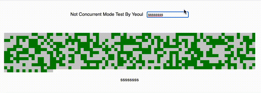이전 포스팅에서 살펴보았던 Sync Mode에서는 renderRootSync에서 호출하는 workLoopSync가 root로 부터 모든 Fiber를 순회하면서 performUnitOfWork를 수행하고, 그 뒤에 commitPhase를 거쳐 화면에 반영됩니다. 화면을 다시 렌더해야 할 때, 모든 Fiber를 순회하면서 performUnitOfWork를 모두 처리하기 전까지는 commitPhase로 넘어가지 않기 때문에 이 workLoopSync를 처리하는 시간이 길어질 경우에는 아래와 같이 사용자에게 Delay를 주어 Application이 느리다는 인상을 주게 됩니다.