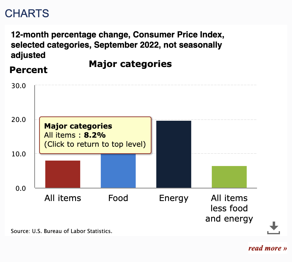 9월에 생각했던 것보다 높은 수준의 금리 인상을 고려하게 된 이유는 고용 시장은 여전히 탄탄한데 비해, CPI 지수는 여전히 높은 수준(8.2%)을 보여주고 있기 때문이다.