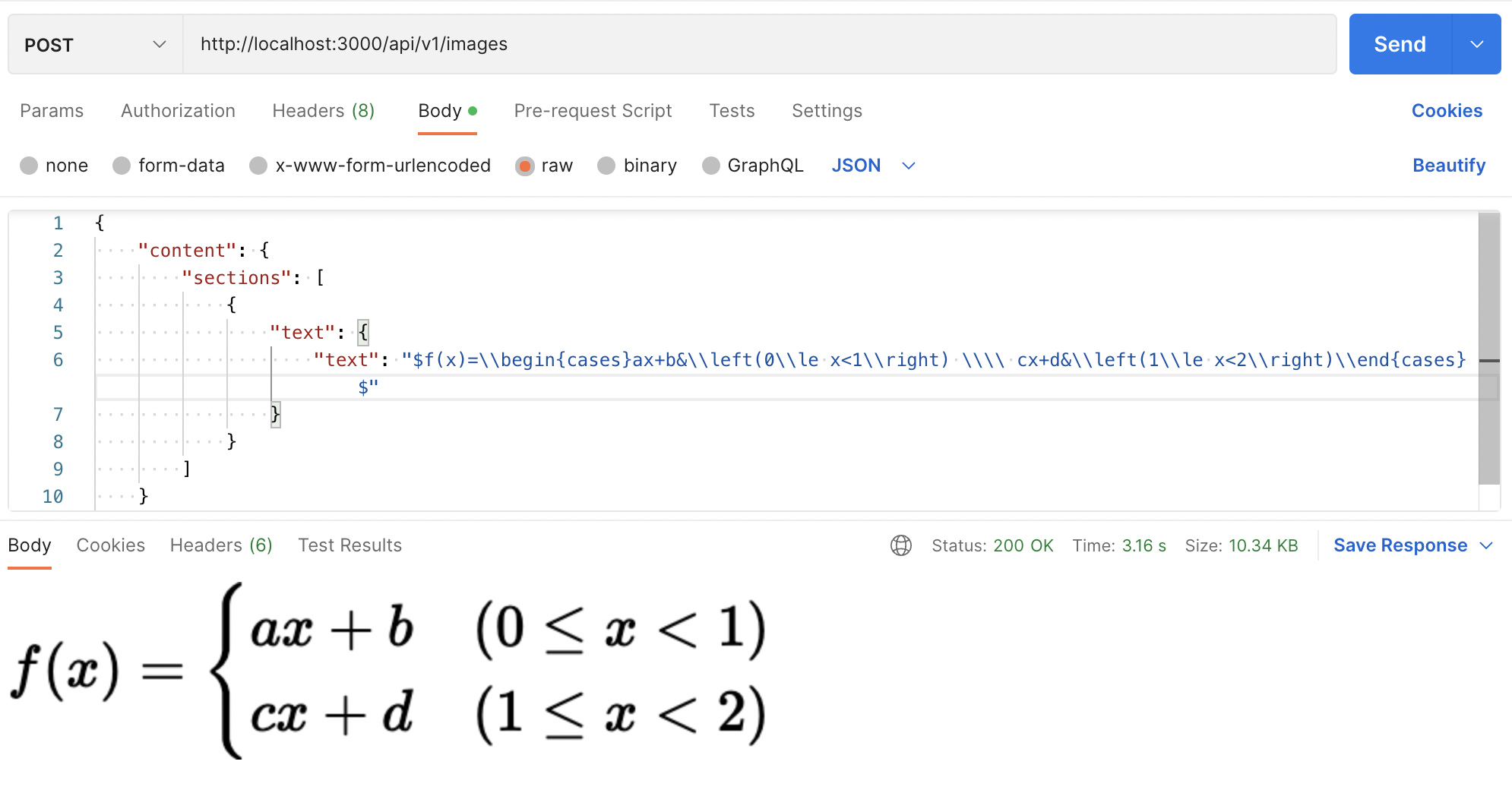 이 수식을 라이브러리를 사용해서 user-side에서 사용자의 화면에 그대로 그려주는 방법도 있겠지만, 이는 클라이언트 사이드의 많은 리소스를 소모하게 됩니다. 게다가 웹뷰가 아닌 Native 환경에서는 수식을 렌더 하기 위해 엄청난 양의 폰트를 로드해야 하는데, 이는 결국 애플리케이션의 번들 사이즈를 필요 이상으로 크게 만들게 됩니다. (통계적으로 애플리케이션 사이즈가 커질수록 다운로드 수가 줄어듭니다) 이 문제를 해결하기 위해 문제 자체는 Database에 "Latex String"의 형태로 저장하되, 사용자에게 문제를 보여줄 때는 "이미지"의 형태로 내려주기로 결정하였으며, Chromium 기반의 Puppeteer를 사용한 Node.js 서버를 만들어서 이 수식을 이미지로 변환하도록 했습니다.