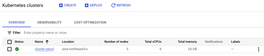 gcloud container clusters get-credentials cluster-yeoul --region asia-northeast3-c