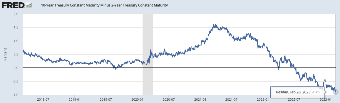 즉, 금리가 고점을 찍고 곧 내려갈 것 같으면 모든 사람들이 고점에서 장기국채로 돈을 묶으려고 할 것이며, 이에 따라 장기 국채의 수요가 높아지게 되고 이는 장기 국채 금리의 하락으로 이어진다. 그렇다면 여기에서 중요한 것은 "금리가 고점을 찍고 곧 내려갈 것 같다"는 가정을 시장이 기정사실화 하고 있다는 것이며, 이는 단기 금리로 돈을 빌려 장기 금리로 대출해주는 은행의 예대마진 수익모델을 약화시켜 은행의 재정 건전성을 취약하게 만든다. 은행의 재정 건전성이 취약해진다는 것은 실물경제에 유동성이 충분하게 공급되지 않는다는 것을 의미하며 이것은 경기 침체를 일으키는 주요 원인 중 하나가 된다.