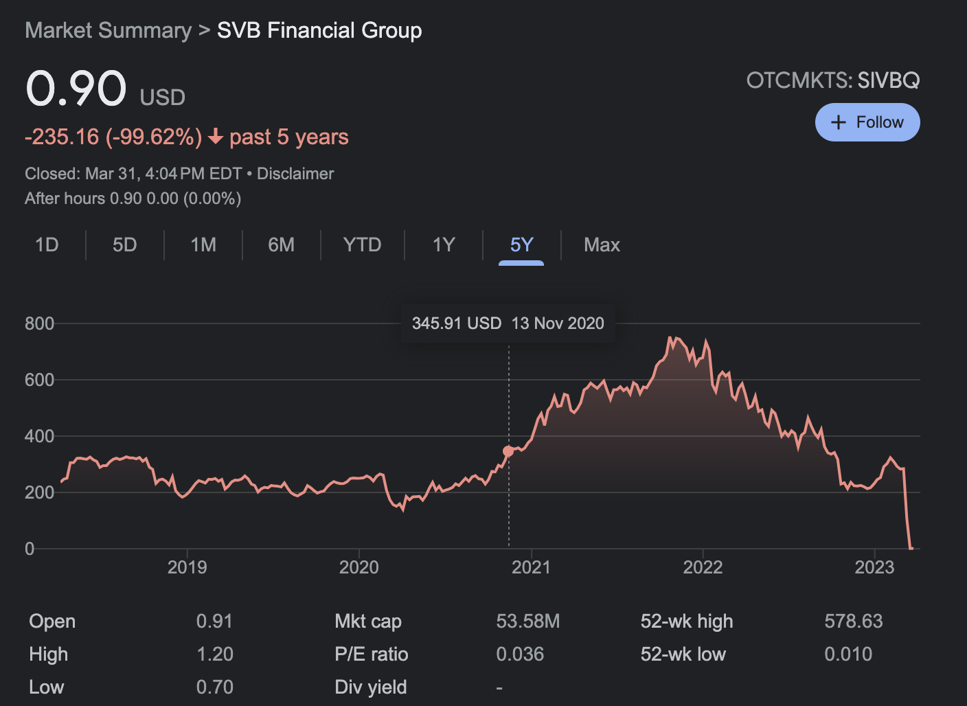 유동성이 넘쳐나던 코로나 시기에는 IT 업종이 매우 좋았다. 수많은 스타트업들이 법인 자본을 SVB에 예치하기 시작했고, 넘쳐나는 유동성으로 인해 예치된 만큼 대출해 줄 투자처를 찾지 못했는지 SVB는 장기 국채를 담기 시작했다. 즉 "예금으로 당긴 돈으로 장기 국채 투자를 한 것"이다. 이러한 프래질 한 비용구조(이러한 상황에서의 프래질은 장기 금리가 올라가는 상황에서 예치금을 찾으려는 수요가 늘어나는 상황을 의미할 것이다.)를 가지고 수익을 내던 SVB는 IT 업종의 불황과 함께 위기를 맞이했다. 금리가 올라가면서 장기 국채의 가격은 떨어지고, 유동성이 수축되면서 IT기업들은 파산하거나 예치해 둔 자금을 찾아야 하는 사태가 발생했다. SVB는 장기 국채의 형태로 자산을 보유하고 있었지만 평가 손실인 상태였고, 수많은 IT 기업들의 출금 요청을 감당하기 위해서는 유상증자를 하거나 평가 손실을 확정 손실로 바꾸어 자금을 제공했어야 했는데, 이미 이 시점부터 파산은 예견되어 있었다.