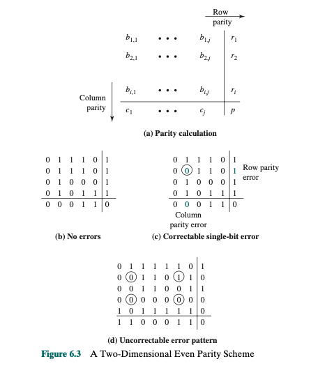 The simplest error-detecting scheme is to append a parity bit to the end of a block of data. A typical example is character transmission, in which a parity bit is attached to each 7-bit IRA character. The value of this bit is selected so that the character has an even number of 1s (even parity) or an odd number of 1s (odd parity).