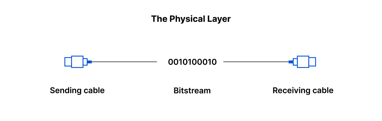 Physical Layer는 데이터 링크 레이어로부터 내려오는 비트 스트림을 시그널(아날로그 신호 또는 디지털 신호)로 인코딩하여 매체(medium)를 통해 전송하고, 수신된 아날로그 신호를 다시 디코딩하여 비트 스트림으로 데이터 링크 레이어로 전달하는 역할을 담당합니다.