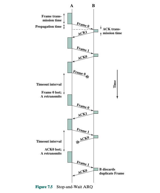 ACK는 여러가지 이후로 도착하지 않을 수 있습니다. 수신 측에서 프레임을 받지 못했거나, 수신 측에서 프레임을 받았지만 ACK 프레임이 중간에 유실되어 송신 측에서 ACK 프레임을 받지 못하는 경우입니다. Stop & Wait는 이 모든 케이스에 대응이 가능하지만, 하나의 프레임이 완전히 전송이 성공된 이후에야 다음 프레임을 보낼 수 있으므로, 다량의 프레임을 보내야 하는 경우에는 성능이 다소 떨어지는 문제가 생기게 됩니다.