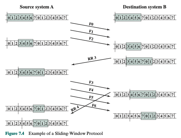 Stop & Wait 방식으로 통신했다면 F0을 보내고, 이에 대한 ACK을 받은 뒤에야 F1을 보낼 수 있었겠지만, Sliding Window 방식을 사용하면 ACK 없이 최대 7개의 프레임을 빠르게 보낼 수 있으므로 Propagation Delay가 줄어들어 성능이 좋아집니다.