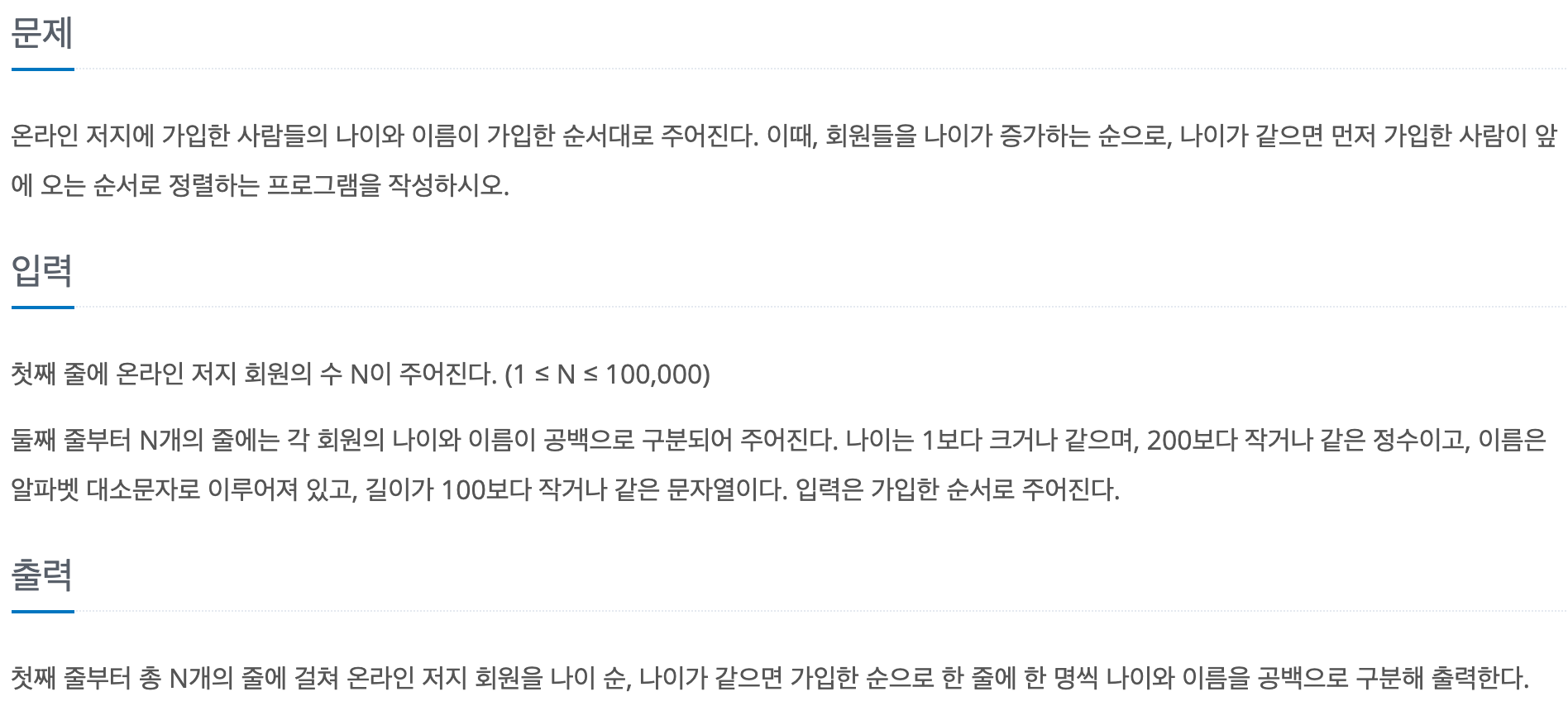 [BOJ_10814 | Stable Sort] 나이순 정렬