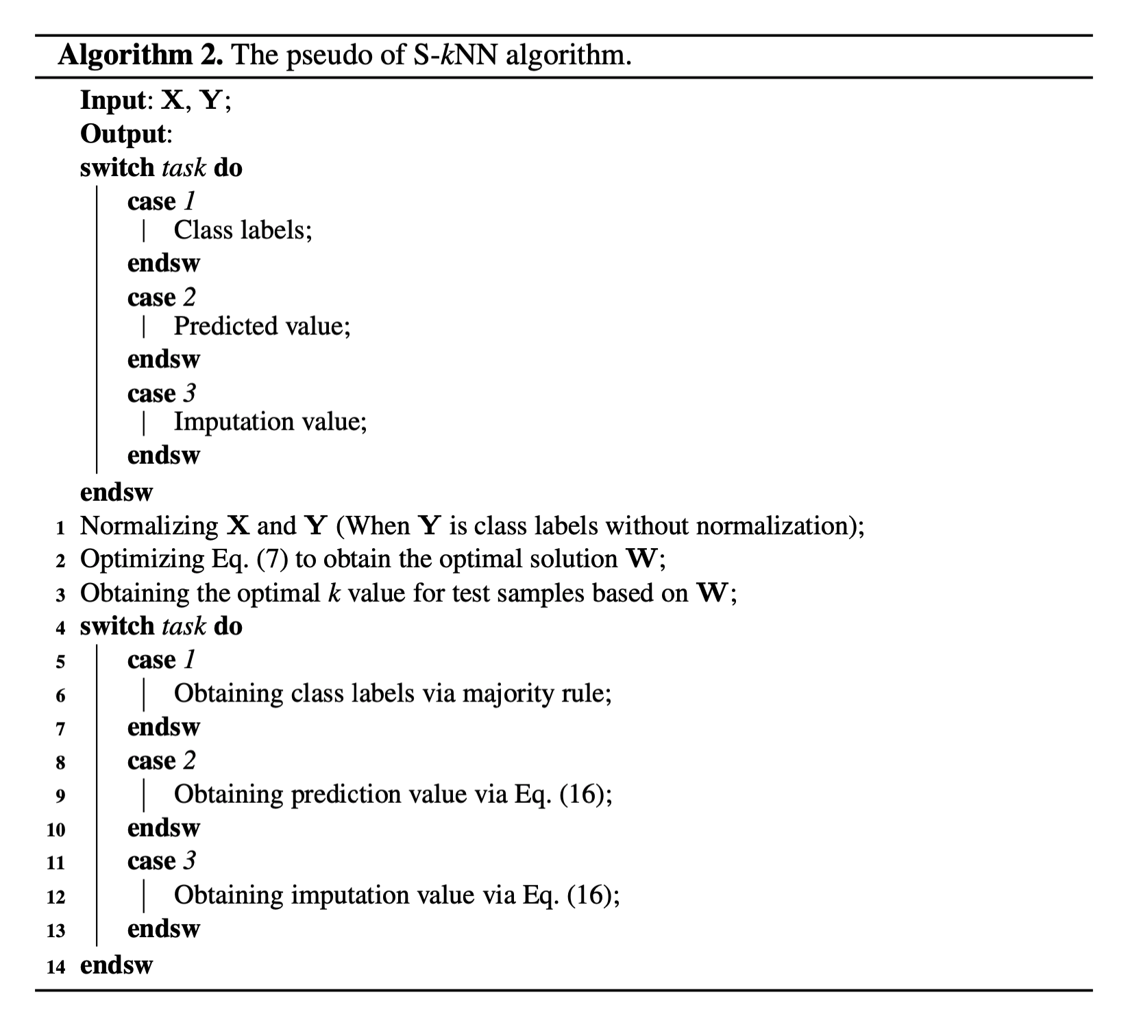 위 식을 통해 얻은 $W$에서 테스트 샘플마다 최적화된 K값을 구할 수 있으며 그 값을 이용하면 KNN알고리즘의 정확도를 높일 수 있다는 것이 이 논문에서 주장하는 핵심 알고리즘입니다.