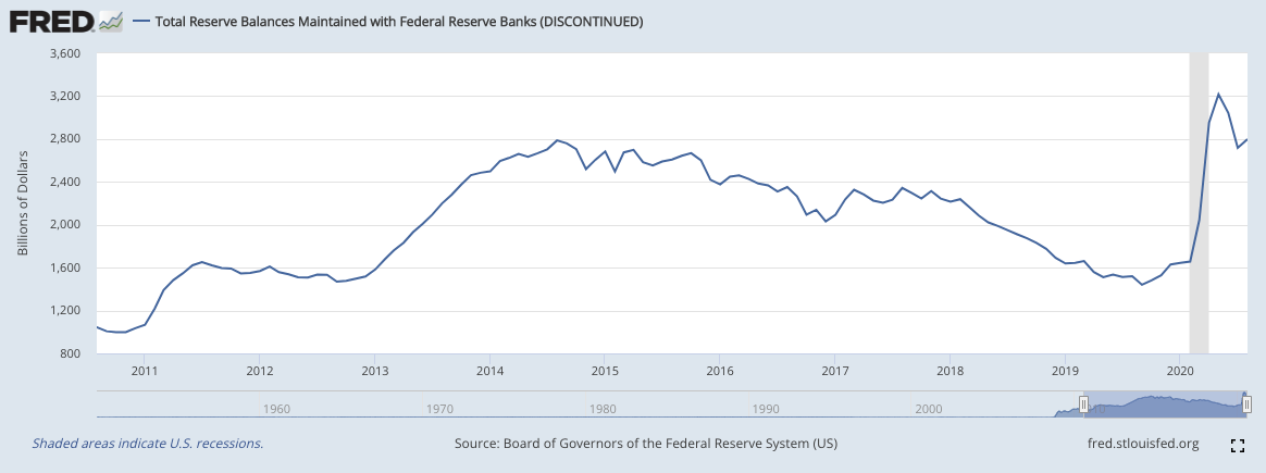 그렇다면 이번엔 뭐가 다른가? 앞선 모델에서 예대 금리에서 역마진이 발생해 은행의 재정 건전성이 약화되는 것이 실물경제에 유동성을 충분하게 공급하지 못하게 만드는 원인으로 작용한다고 살펴보았다. 하지만, 코로나 이후 과도한 재정 완화정책을 사용하면서 은행들의 지급준비금이 폭발적으로 많아졌다. 중앙은행이 지방은행이 보유하고 있던 국채를 다 사주면서 은행의 지급준비금 보유량을 늘렸기 때문에, 지방은행 입장에서는 장기로 대출을 해주더라도 단기로 돈을 빌릴 필요가 없어지게 되는 것이다. 이는 수익률 곡선 역전이 더 이상 선행지표로 작동하지 않는다는 것을 의미한다. "이전과는 다르다"라고 이야기한 것이 바로 이런 지점을 가리킨 것은 아닐까 한다.